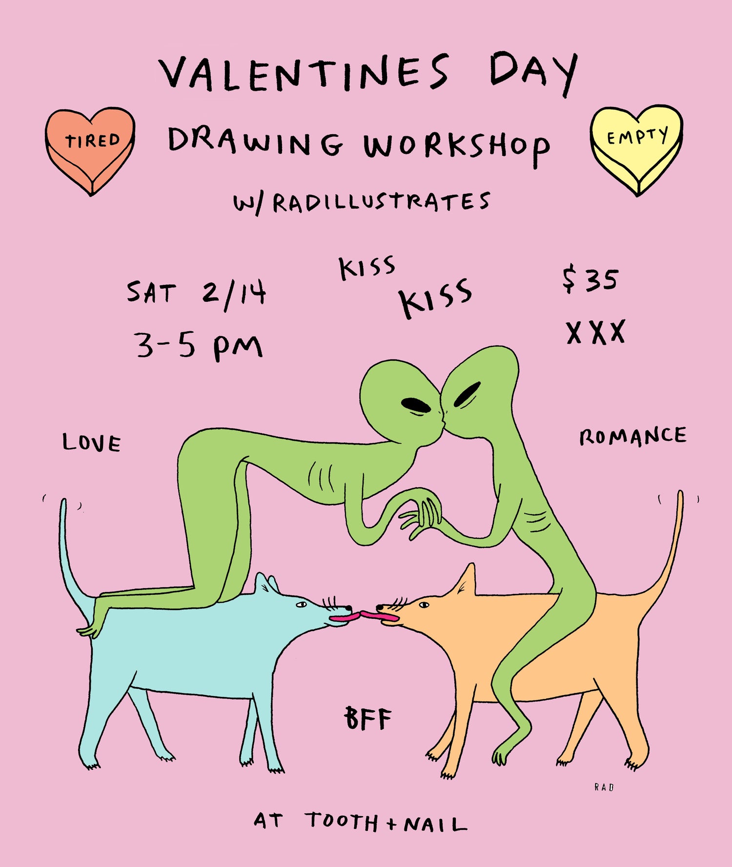 In this wild and spicy workshop created by Radillustrates, you'll enjoy a safe environment to play drawing games and create tons of drawings. Designed to open your mind and allow for a more playful mode of drawing, all skill levels are welcome! We'll be drawing famous hunks, bodacious babes, and all around romantic content. Perfect for singles, pals, or couples, this Valentine's Day workshop is ALWAYS a hit! *This workshop is for adults only.