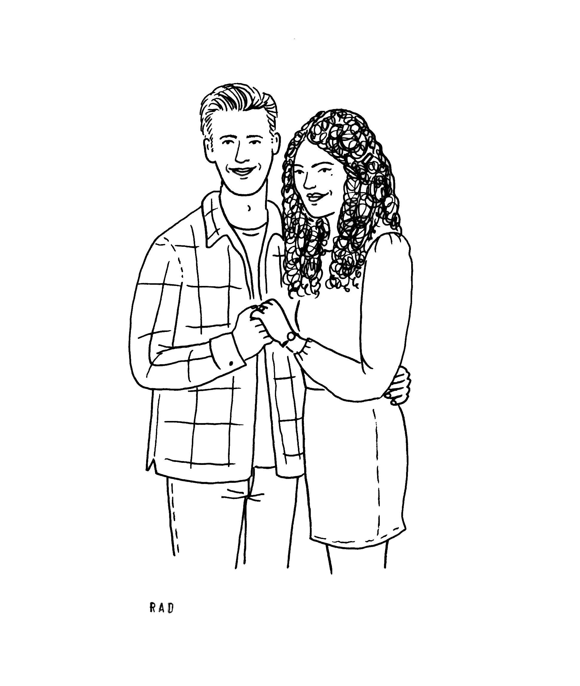 100% custom-drawn portrait of two individuals (people or person and pet) Carefully illustrated based on your reference photos and personal request. All portraits are made-to-order and completely unique to your needs. This is a perfect gift for the special people in your life!